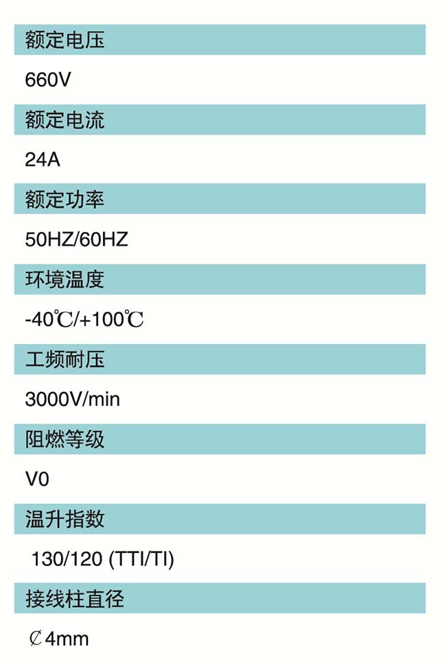 1.絕緣材料采用阻燃增強工程塑料制造,具有絕緣性能好機械強度好耐溫高連續使用溫度達120℃,阻燃性能達到UL94-VO級標準