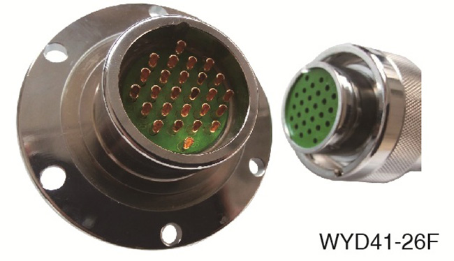 WYD41-26航空插座是為ZW20,ZW28,ZW12型戶外交流智能分界真空斷路器(看門狗)而開發的新型連接器產品。 1.采用雙連接帽螺紋連接鎖緊結構(雙重保護),具有耐環境性和抗沖擊性。 2.外殼采用銅合金