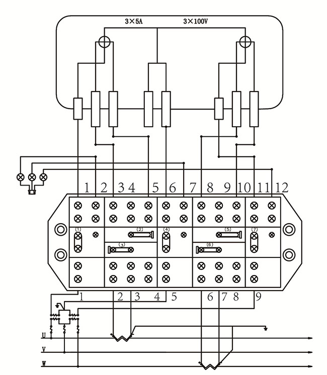 電度表接線盒A、B、C相線及中性線N均帶保護,一般用在額定電壓3×100/57.7
