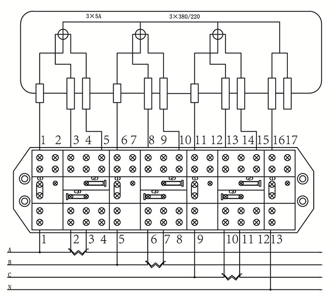 電度表接線盒除N線帶熔斷器系列,A相、B相、C相均采用聯(lián)接片聯(lián)接,一般用在額定電壓3×380V(一般二線或四線)有功電度表上。