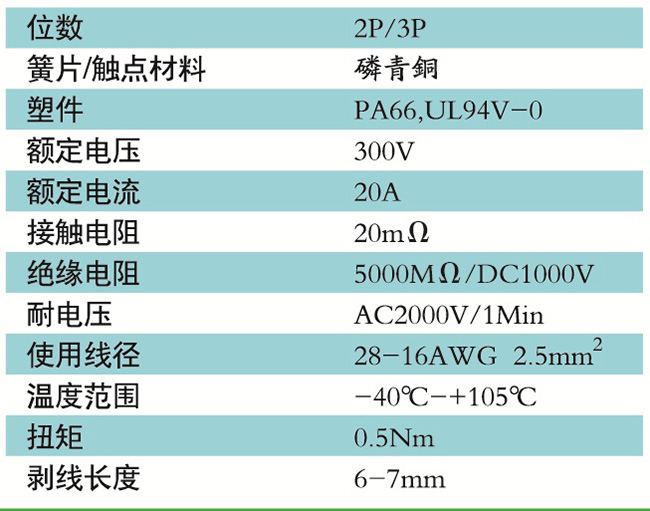 接線端子的絕緣材料用改性的尼龍(PA66),能達(dá)到或超過IEC947-7-1EN60947-7-1標(biāo)準(zhǔn),阻燃等級(jí)達(dá)到UL94V-0具有良好的電氣性能和機(jī)械性能。螺絲用高強(qiáng)度的鋼制成鍍鋅或鎳處理,導(dǎo)電體四方針用合金銅制成表面鍍錫,壓片采用彈性及極強(qiáng)的磷青銅表面鍍錫或鎳;壓線框用抗應(yīng)力裂縫腐蝕的合金銅制成,這些金屬表面還鍍錫或鍍鎳加以保護(hù)。設(shè)計(jì)完全符合IEC60947-7-1.GB14048.7等標(biāo)準(zhǔn)。