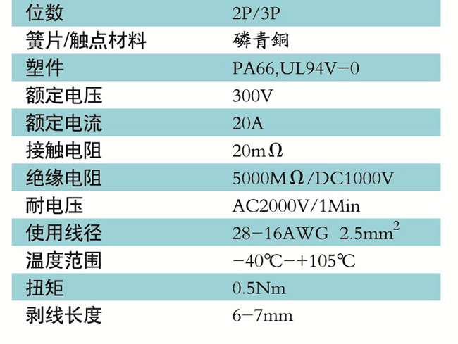 接線端子的絕緣材料用改性的尼龍(PA66),能達到或超過IEC947-7-1EN60947-7-1標準,阻燃等級達到UL94,V-0具有良好的電氣性能和機械性能。螺絲用高強度的鋼制成鍍鋅或鎳處理,導電體四方針用合金銅制成表面鍍錫,壓片采用彈性及極強的磷青銅表面鍍錫或鎳;壓線框用抗應(yīng)力裂縫腐蝕的合金銅制成,這些金屬表面還鍍錫或鍍鎳加以保護。設(shè)計完全符合IEC60947-7-1.GB14048.7等標準。