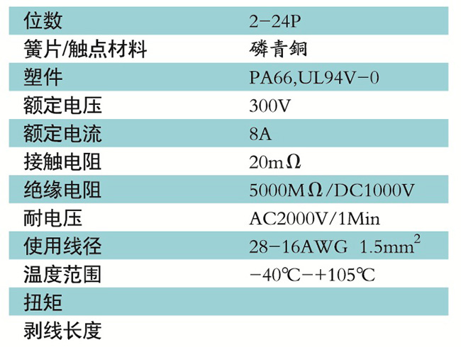 接線端子的絕緣材料用改性的尼龍(PA66),能達到或超過IEC947-7-1EN60947-7-1標準,阻燃等級達到UL94V-0具有良好的電氣性能和機械性能。螺絲用高強度的鋼制成鍍鋅或鎳處理,導電體四方針用合金銅制成表面鍍錫,壓片采用彈性及極強的磷青銅表面鍍錫或鎳;壓線框用抗應力裂縫腐蝕的合金銅制成,這些金屬表面還鍍錫或鍍鎳加以保護。設計完全符合IEC60947-7-1.GB14048.7等標準。
